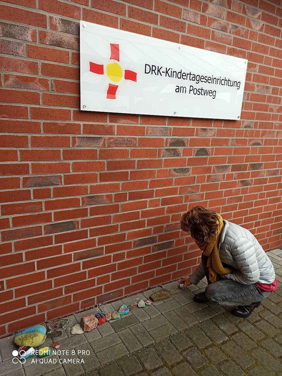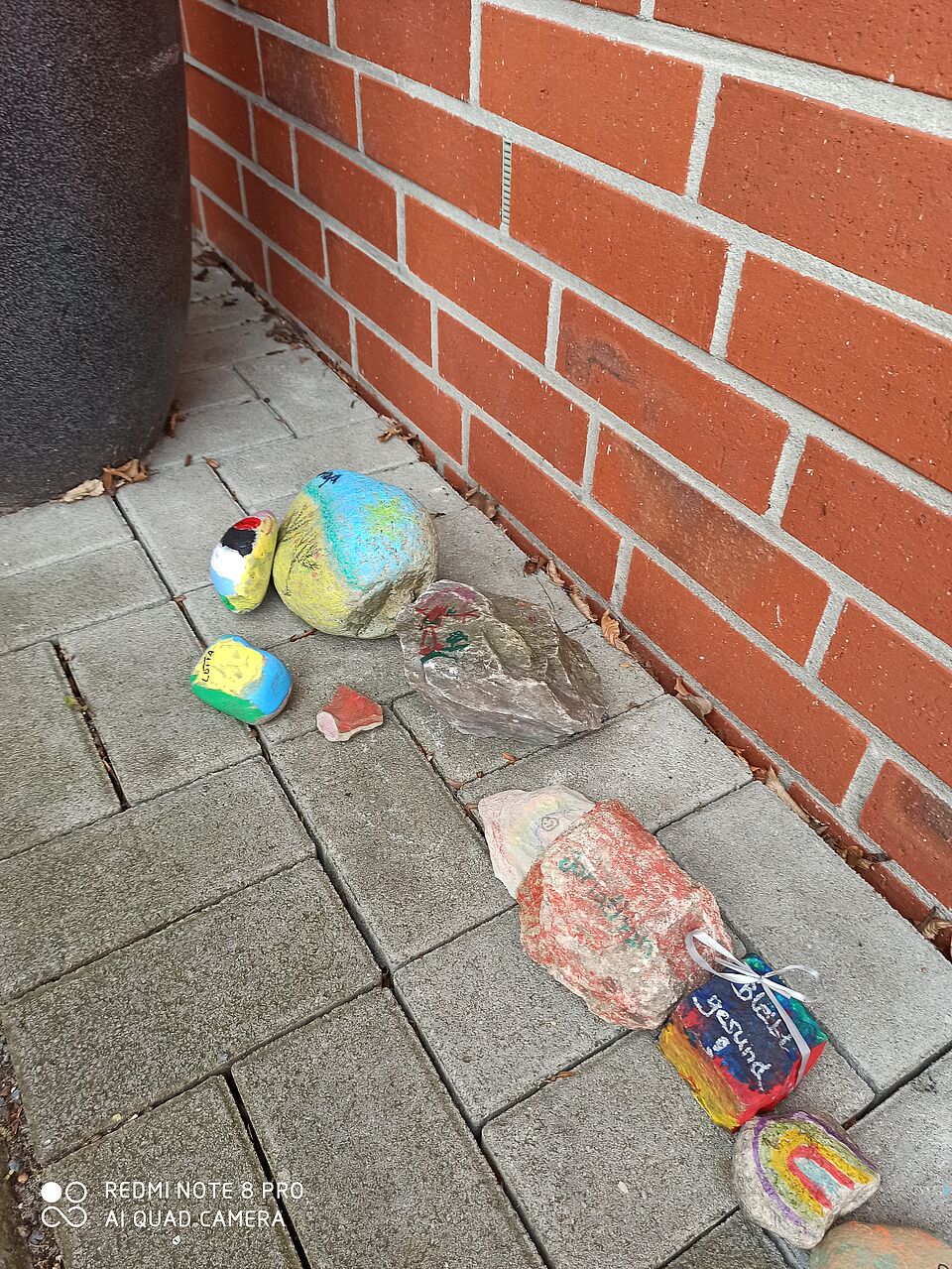 Doch auch Eltern machen sich Gedanken und tragen ihre Ideen an das Team heran. Aus einer Idee heraus entstand sofort ein Aufruf an alle Familien, welche diese Idee umgehend mit ihren Kindern in die Tat umgesetzt haben. Ganz viele Kinder suchen nun auf einem Spaziergang einen Stein, den sie mit nach Hause nehmen und dort kreativ gestalten. Diesen bringen sie dann, mit ihrem Namen versehen, zum Kindergarten und legen ihn dort vor den Eingang. Bis zur Wiederherstellung des normalen Alltags wird sich daraus ganz bestimmt eine lange bunte Reihe ergeben und den Bereich verzieren. Das Team spürt auf diese Weise, durch diese schöne Aktion, den Zusammenhalt und die Verbundenheit der Elternschaft.