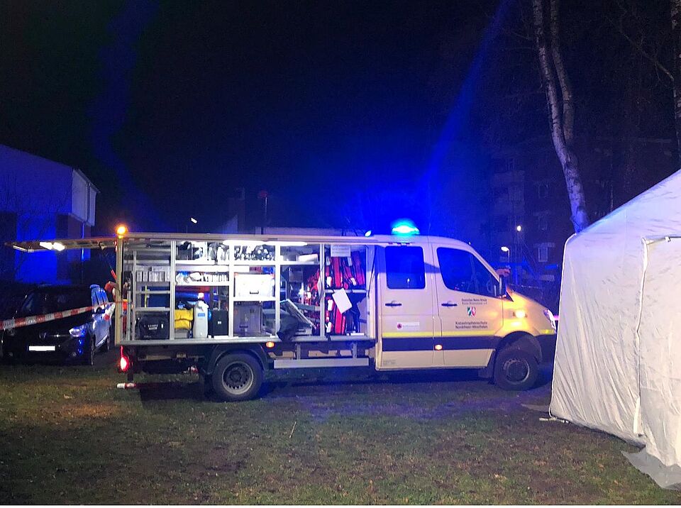 Als das neue Jahr nicht einmal 1 Stunde alt war, wurden zur Unterstützung des Rettungsdienstes von der Leitstelle gemäß dem Notfallsystem des Kreises Gütersloh von den anerkannten Hilfsorganisationen DRK und MHD nachfolgende Einsatzformationen angefordert. Das Notfallmodul „Patientenablage“ mit zwei Gerätewagen Sanitätsdienst des DRK zur Unterstützung der Versorgung von Verletzten im der Einsatzstelle, dem Patiententransportzug 10 des Kreises Gütersloh, zur Unterstützung bei rettungsdienstlichen Transporten in Kliniken und das Notfallmodul Betreuung.