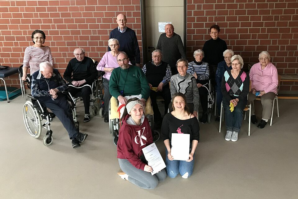 Am vergangenen Mittwoch hatten die zwei Schülerinnen Violetta Schwarzkopf und Melina Smolenski ihren letzten Nachmittag in der Schlaganfallselbsthilfegruppe des DRK OV Versmold. Im Rahmen des Schulprojektes "Diakonie" haben sie seit Beginn des Schuljahres die Kursleiterin Ingeborg Storre unterstützt. Dabei konnten sie nicht nur einen theoretischen Einblick in die Übungen erhalten, sondern auch die praktische Umsetzung begleiten. "Es hat uns viel Freude gemacht und man hat viele wichtige Erfahrungen sammeln können", berichten die Beiden von ihrer Zeit beim DRK. Unter anderem haben sie anfängliche Unsicherheiten im Umgang mit Schlaganfallpatienten schnell ablegen können und Übungen eigenständig erarbeitet.