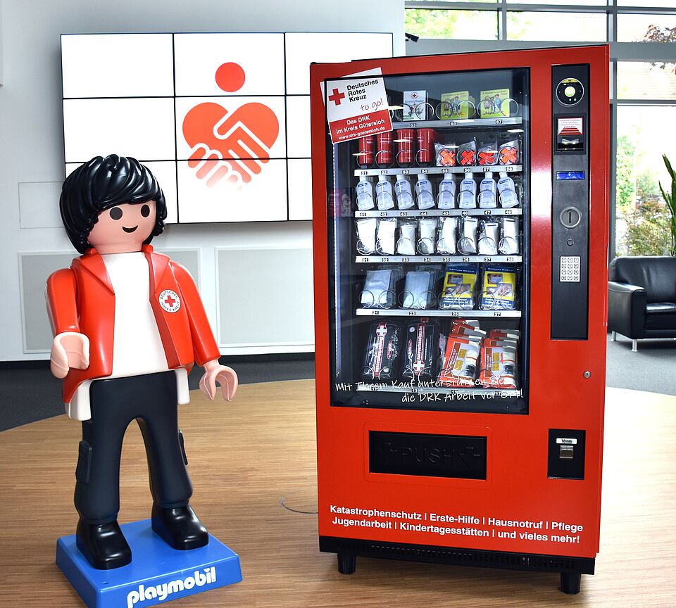 Bezahlt wird wahlweise mit Bargeld oder kontaktlos per Karte oder Smartphone. Und das alles zu handelsüblichen Preisen. Übrigens: Wer sich bei „DRK To go“ bedient, hilft nicht nur sich selbst (durch den Kauf einer nützlichen Sache). Er oder sie unterstützt damit auch die DRK-Arbeit vor Ort, denn der Großteil vom Verkaufserlös fließt in lokale Hilfsprojekte des Deutschen Roten Kreuzes.