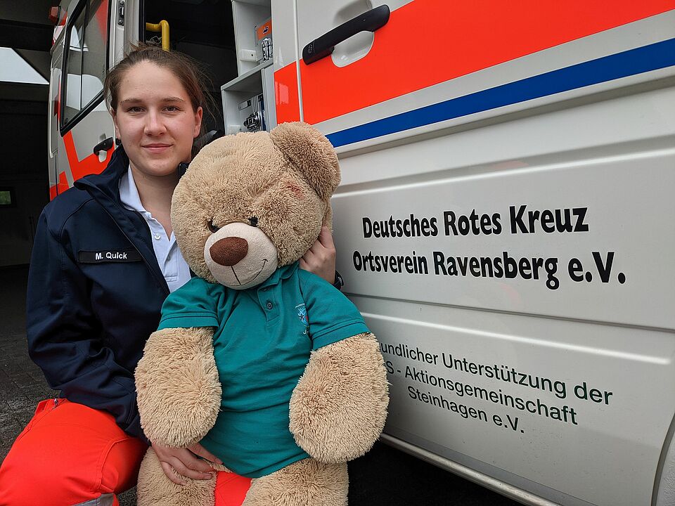 An das Rote Kreuz geriet Marret Quick, weil sie gerne Menschen in Not helfen wollte. „Ich fand den Rettungsdienst ganz spannend. Deswegen bin ich seinerzeit beim Jugendrotkreuz in Gütersloh eingestiegen“, erinnert sich die junge Frau an den Anfang ihrer Rotkreuz-Karriere. Doch schon kurze Zeit später löste sich das Jugendrotkreuz in Gütersloh auf. Marret Quick aber blieb dem DRK treu und fand Aufnahme im Ortsverein Gütersloh, wo sie sich zur Ersthelferin ausbilden ließ. Nach schulisch bedingtem Umzug nach Werther wechselte die gebürtige Steinhagenerin zum Ortsverein Ravensberg. Hier absolvierte sie einen Sanitätshelfer:innen-Lehrgang. Es folgten zahlreiche Einsätze als Sanitäterin bei Fußballspielen, Judo-Turnieren, Stadtfesten oder Groß-Events im ehemaligen Gerry-Weber-Stadion.
