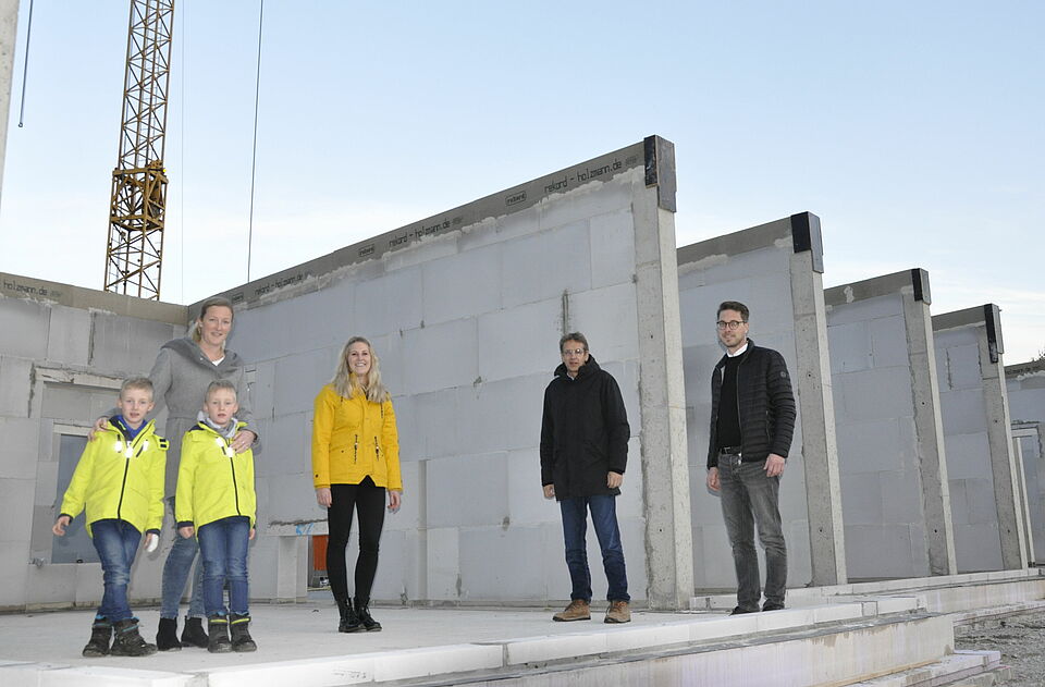 Nach Plänen des Versmolder Architekten und Dipl.-Ingenieurs Frank Schönberg entsteht auf dem 3.500 Quadratmeter großen Grundstück am Rande eines kleinen Wäldchens auf einer Grundfläche von 875 Quadratmetern ein eingeschossiges Niedrigenergie-Gebäude in so genannter Hybridbauweise. Dies bedeutet auf einem Beton-Boden mit Wärmedämmfundament massive Kalksandstein-Innenwände als Schallschutz und Wärmespeicher, kombiniert mit Dach und Außenwänden in Holzrahmenbauweise. Weitere bauliche Besonderheiten sind lichtdurchflute, nach Südwesten ausgerichtete Gruppenräume, eine Außenfassade mit Lärchenholz-Elementen und mineralischem, zum Teil farbigem Putz sowie eine Beheizung über ein Nahwärmenetz.
