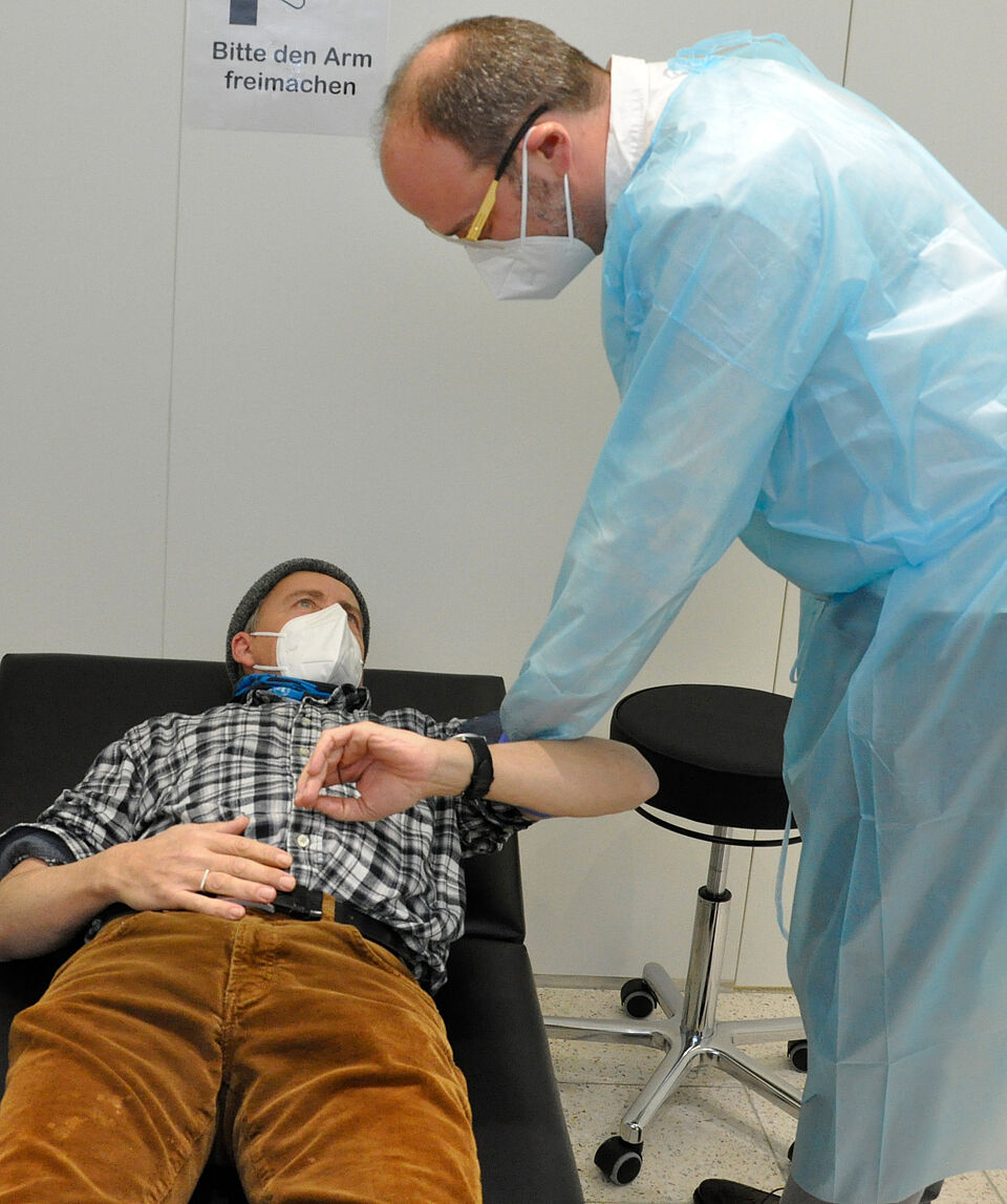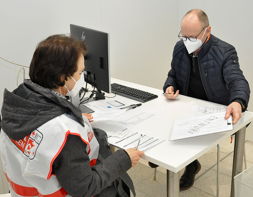 Hier und da noch an ein paar Stellschrauben drehen, doch alles in allem passen die Abstände und Abläufe, kann das zentrale Corona-Impfzentrum für den Kreis Gütersloh in Betrieb gehen. Das ist die Erfahrung aus einem gut zweistündigen Probelauf. Unter maßgeblicher Beteiligung von ehrenamtlichen Kräften des Deutschen Roten Kreuzes hatte der Kreis Gütersloh getestet, ob das in Rekordzeit entstandene Impfzentrum seine Bewährungsprobe bestehen würde.