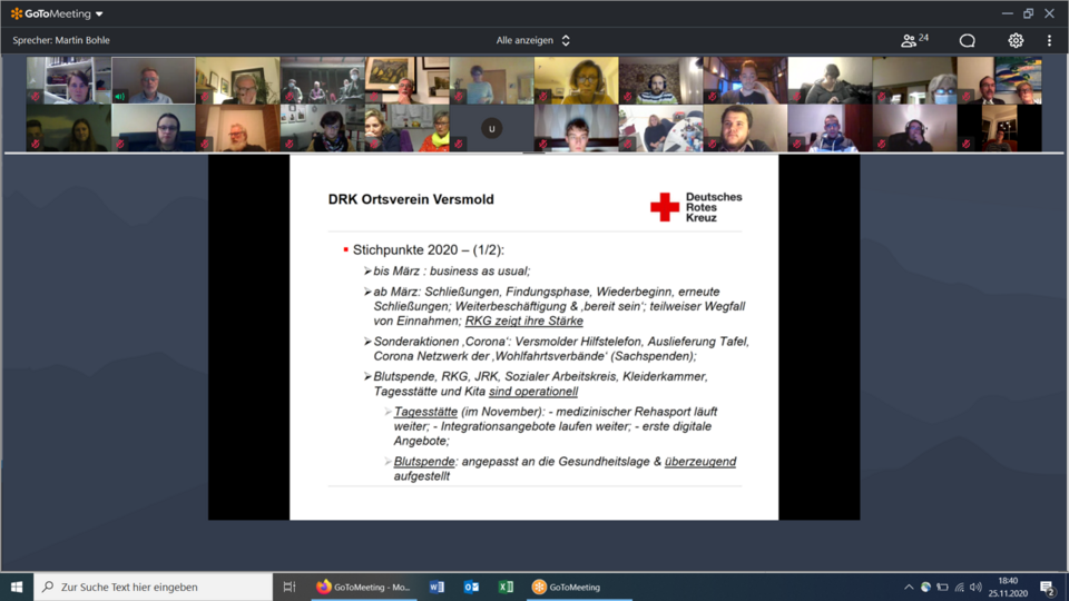 Auf Grund der geltenden Kontaktbeschränkungen fand die Versammlung digital an zwei aufeinander folgenden Abende statt. Zunächst haben die Mitglieder am Dienstag, 24. November einstimmig die neue Satzung des DRK Ortsvereins in Versmold beschlossen.