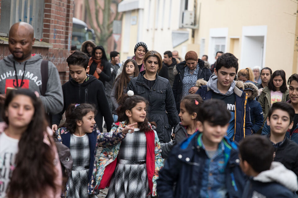 Die Kinder der Parsevalsiedlung auf dem Weg zum Bambi Kino bei der Aktion MIThelfen in Gütersloh, Fotos: Veit Mette